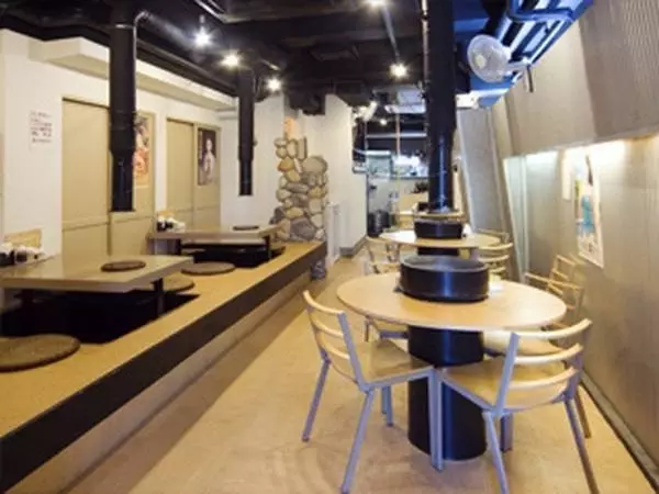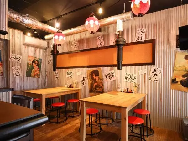 提灯が吊られ、レトロなポスターがあちこちに貼られた店内は、にぎやかな雰囲気。テーブル席とカウンター席が用意されていて、少人数からグループでの利用まで、カジュアルに楽しむことができます。鮮度抜群で低糖質なホルモンを、七輪を囲んでわいわいと味わえますよ。