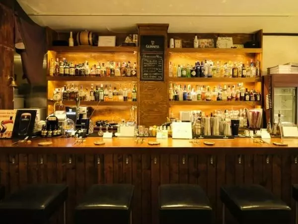 圧巻のボトルのラインナップを眺めながらカウンター席でくつろぐ