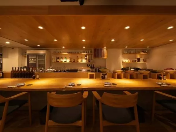 お店は駅近でありながら、隠れ家的雰囲気もあるつくり。あたたかな照明に照らされたのれんをくぐると、木の温もりが感じられる落ち着いた雰囲気の店内へ。人気のカウンター席、ゆったりとしたテーブル席のほか、2名から24名まで人数に合わせて対応可能な個室もあります。