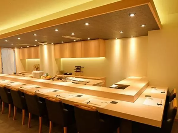 落ち着いた和の空間の中心は洗練されたカウンター席。店主のおもてなしも心地よく、鮨店のカウンターデビューにもピッタリです。4名からの小グループから利用できる個室は夜景も見事。旬が香るコース料理と相性抜群の日本酒やワインも取りそろえるなど、ドリンクメニューも充実しています。