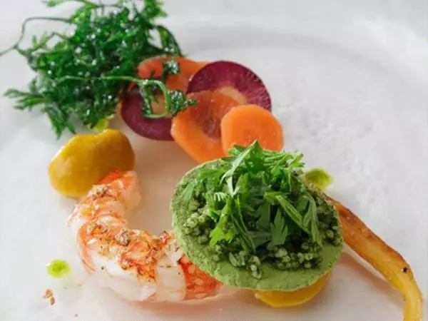 人参の食感や甘みの違いを楽しめる『ボタン海老のミキュイニンジンのバリエ』