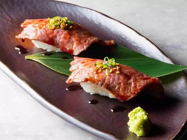A5ランクの赤身肉をさっと炙った『肉寿し』