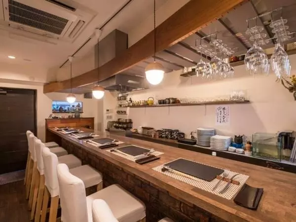 店内はカウンター席の1階とテーブル席と個室が用意された2階の2フロア。仲間との食事会や大切な接待などには2階もオススメですが、天ぷらを楽しむならやはり1階のカウンター席。店主がつくり出す『創作天ぷら』の数々が目の前でできあがっていく様子は、見ているだけでも楽しくなってきます。