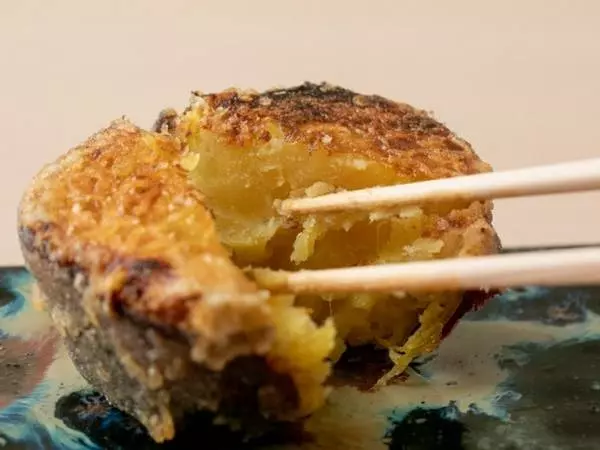 1時間かけて蒸してから、低温で30分かけてじっくりと揚げる、名物『シルクスイートの天ぷら』