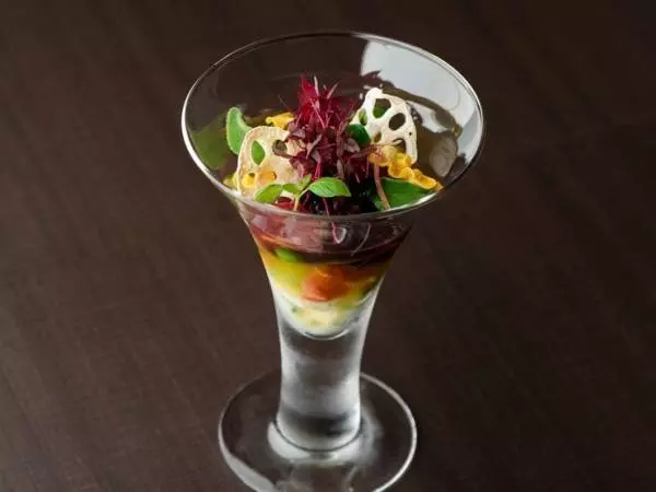 生ウニや毛蟹、加賀蓮根など、海&土の恵みを重ね合わせた『海土パフェ』