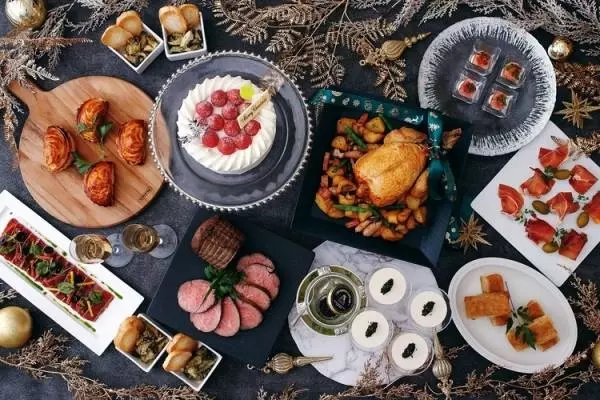 高級食材をアレンジした「ゴールドセット」には、フォアグラと洋梨をパート・フィローで包み、トリュフソースを添えた一品、ズワイ蟹の旨味が詰まったカリフラワーのムースとキャビア、柔らかく芳醇でジューシーな味わいのローストビーフなどホテルならではのメニューを揃え、ワンランク上のクリスマスパーティーを華やかに演出。