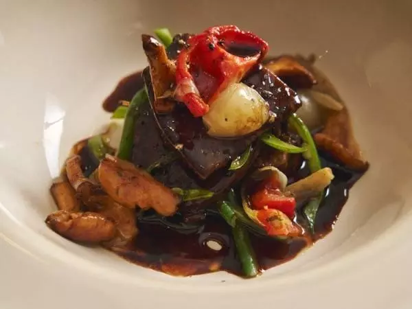 これに、インゲンのサラダや玉ねぎのコンフィ、ジロール茸を合わせるセンスが心憎い。煮込み料理でありながら、見た目も味わいも軽やかに仕立てている。