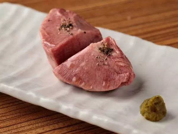 タンの最高級部位・タン元を2cm以上の厚切りで提供。脂がきれいにのった霜降り状で柔らかく、噛むごとに至福の旨みにひたれます。好相性の柚子胡椒でどうぞ。