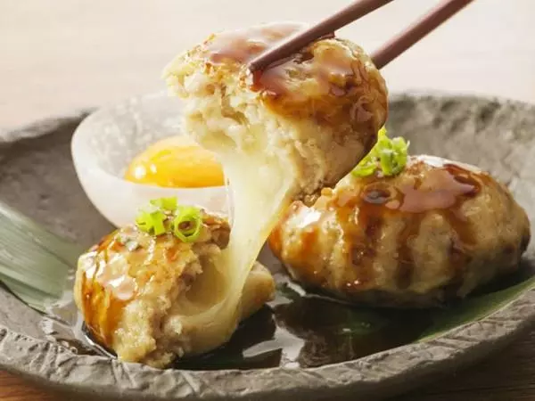 黄身を絡めて食べるのもオススメの『<当店人気No.1>手づくりとろ~りチーズつくね』