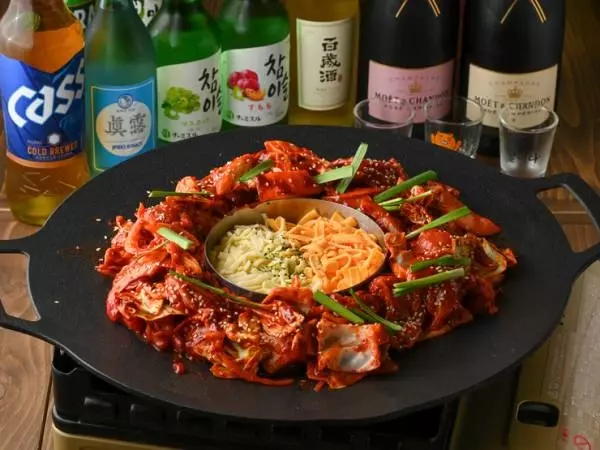 甘辛さが魅力の『チーズダッカルビ』を韓国のお酒と一緒に