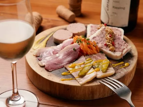 看板メニューの『自家製シャルキュトリー盛り合わせ』。手間をかけたオードブルは、一品ずつにこだわりが詰まっています