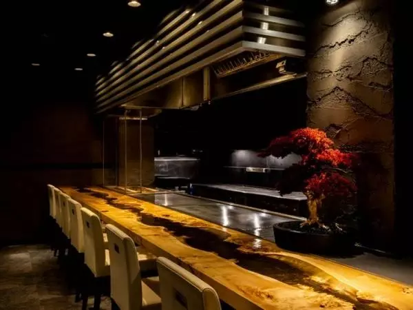 ラグジュアリーな店内は、シックでモダンなムードに統一されています。炎が上がるパフォーマンスを目の前で見られるカウンター席、広々としたテーブル席、3名から6名で使える個室も用意。この雰囲気ながら、子ども連れもOKなので、週末の家族での食事会にもオススメです。