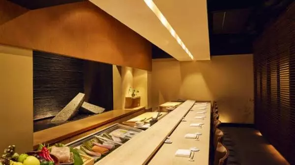アメリカを拠点に国内外のセレブリティを魅了する和食料理人・森本正治氏の匠のエッセンスが注ぎ込まれたレストラン【atelier 森本 XEX】。その1階にあるのが寿司フロア。白木の一枚板の寿司カウンタ-で旬の握り寿司をはじめ、日本人ならではの和と洋の融合した料理が楽しめます。