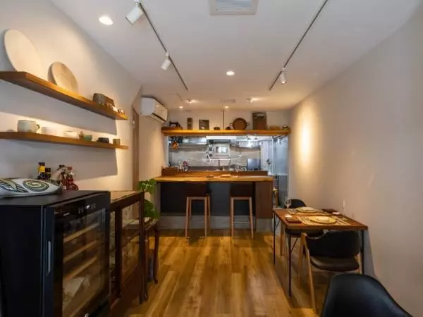 まるでフランスの街角に佇む小さなレストランのよう。木の風合いに憩える空間には、アンティーク調の小物が飾られていて居心地も抜群です。センスの映える料理を盛り付ける器は作家モノが中心。岡山の備前焼をはじめ、古代の器・須恵器を現代作家が復活した器や沖縄の陶器・やちむんもそろい、独創的な料理の魅力を演出してくれます。