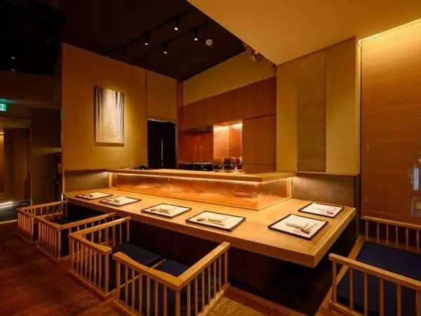 お店はエントランスから和の雰囲気を感じられるつくりになっています。目の前で職人が料理する様子をライブ感たっぷりに見ることのできるカウンター席は掘りごたつ式。ほかにも椅子の置かれたカウンター席やビジネスでの会席にぴったりの個室、気軽に使える半個室も用意されています。