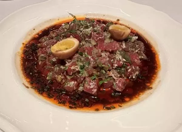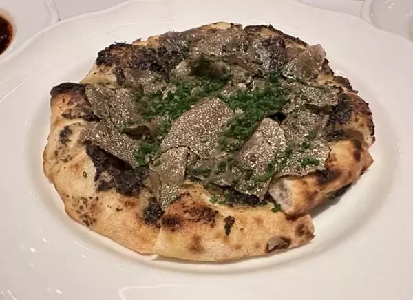 トリュフが香る焼きたてのピザは絶妙で、最後には牛肉を目の前で焼いてくれましたが、もうお腹がいっぱいになるほどでした。