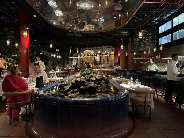 岩のプールの部屋なのですが、生け簀ということでしょうか。新鮮な魚のデコレーションがあり、サステナブルな方法で調達されたシーフードを愉しめるようになっています。