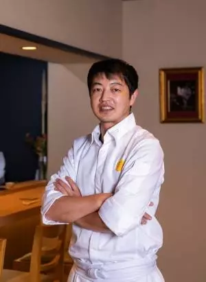 1982年、福岡県生まれ。福岡の人気店【たつみ寿司】を営む両親のもとで育ち、父と同じ寿司職人の道を志す。高校卒業後は東京に移り、旧築地市場の名店【大和寿司】で修業。長年の研鑽を経て福岡に戻り、薬院の日本料理店で和食の腕を磨いたのち、父の店【たつみ寿司】で経験を積み、2023年8月の【割烹鮨華あざ】創業時に料理長に就任。独自開発の寿司酢など、伝統の技に新たな趣向を加え、福岡の食シーンに新風を吹き込む。