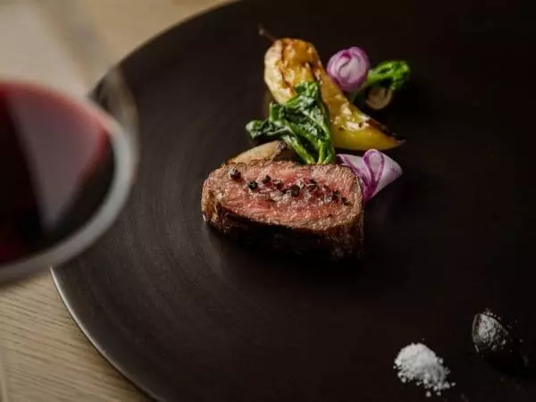 「一般的には肉を焼いたあと休ませて肉汁が落ち着いた頃にカットしますよね。そうしないと肉汁が出てしまうんです。でもそうなると、肉はもちろん、肉汁の温度も下がっているのでおいしいけれど臨場感に欠けてしまいます。渡邊さんから習った技法は、焼きたて熱々でカットしても肉汁が逃げることなく、口の中でジュワッと広がり、肉そのものだけでなく肉汁の旨味を最大限に味わうことができるのです」と小川さん。