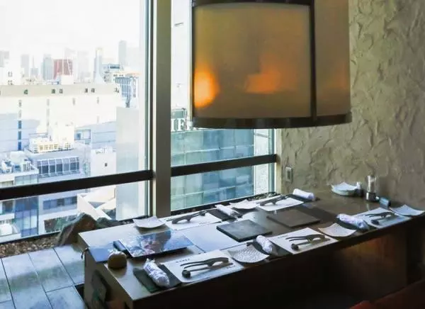 窓側の個室では、夜は夜景を見ながら食事を楽しめる