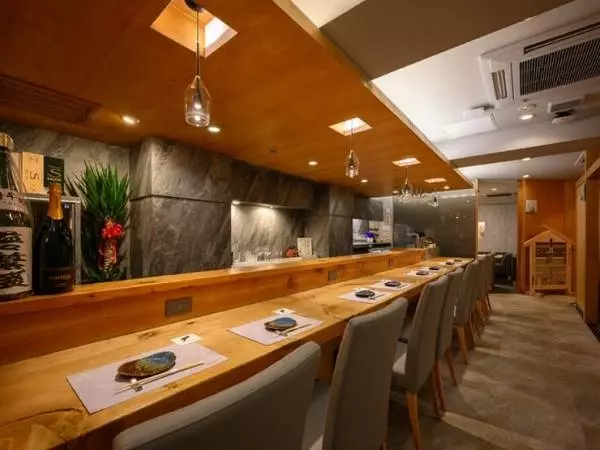 優雅で落ち着いた雰囲気の店内。鍋デートもオシャレに楽しめるカウンター席や、4名用と6名用があるテーブル個室(間仕切り調整で10名までOK)に加え、隠れ家感が高いソファ個室(6名まで)もあります。ワインやシャンパンも愛好家羨望の銘柄がそろい、ちゃんこ鍋とのマリアージュで新しい食の楽しみを発見できます。