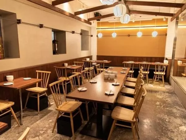 店内は、上から下までガラスになったフルオープンキッチンスタイル。またお店入口では『マンドゥー』を蒸すためのせいろから常に蒸気が立っていて、モダン韓国空間を感じられます。厳選されたマッコリや韓国焼酎など韓国のお酒が充実しているので、柔らかいホロホロ食感の参鶏湯とぜひ一緒に味わってみて。