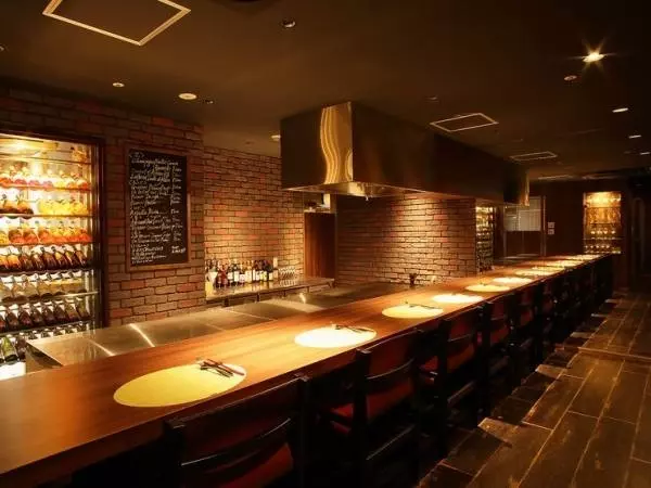 鉄板焼ゾーンはカウンター6席のアットホームな雰囲気で、本格的な鉄板フレンチを肩肘はらずに味わえます。バーゾーンには世界各国から厳選して揃えたワインを常時400本以上もストック。バーとしての単独利用はもちろん、開店直後はウェイティングバーとして、食後は憩いの場として、さまざまな楽しみかたができるスペースです。