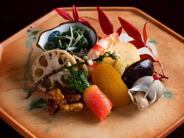 色とりどりの料理を華やかに盛り合わせた『季節の八寸』