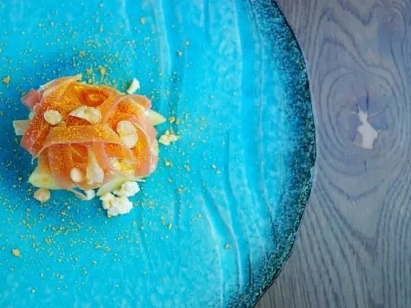 六本木駅から徒歩5分の【白土】は、日本各地から選りすぐった食材を少量多品目のコースで味わえるレストラン。フレンチをベースに和食や中華のエッセンスを加えた独創的な料理は、ワインとのペアリングでさらにおいしさが引き立ちます。『千葉・竹岡産のど黒の炭火焼き』は、身はふっくら、皮はパリパリの食感が楽しめます。