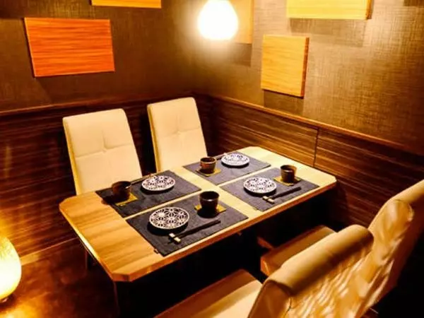 全席個室の店内は、和のテイストを感じられる落ち着いた空間。2名からの利用に対応しているので、デートにもぴったりです。食べ放題、飲み放題付きのプランが用意されているほか、メッセージ付きのプレートも準備してもらえるので、サプライズパーティーや宴会にもオススメです。