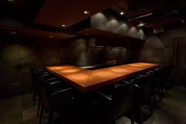 眩く輝く東京タワーを横目に、看板のない白い扉を開けて、階段を下ります。初めて訪れると「本当にここであっているのかな?」と不安になってしまうかもしれません。地下の扉の先には、樹齢180年の欅のカウンターが1m近い奥行きで鎮座。カウンターに立つ店主・下枝正幸氏が笑顔で出迎えてくれます。