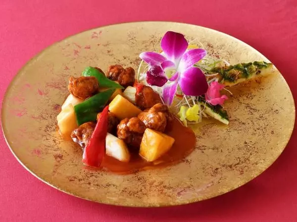 熟したパイナップルと甘酢の酸味、豚肉の旨みがたまらない『ハーブ豚の広東風酢豚』