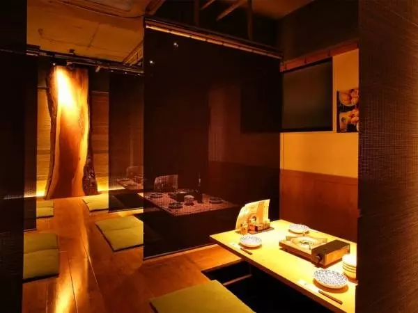 広い掘りごたつ式の席は、間仕切りで半個室にも