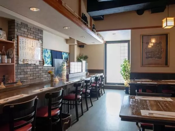 入り口にはお店の中が見えない木製の扉が使われ、隠れ家的な雰囲気。店内へ一歩足を踏み入れると、カウンター席、テーブル席ともに落ち着いてお酒と料理を楽しめる空間が広がっています。蔵出し酒や限定酒など、レアな銘柄がそろった日本酒&焼酎をゆったりと楽しめます。