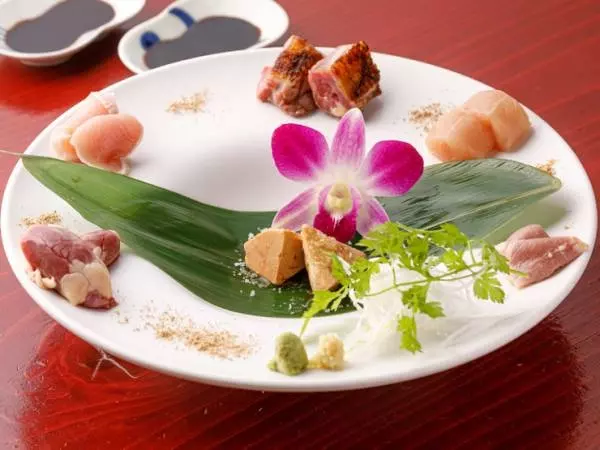 丸鶏で仕入れることで提供が可能になる『高坂鶏お造り盛り合わせ』