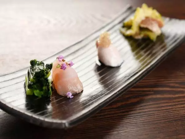 絶妙な火入れによる味わいの違いが楽しめる『鶏ムネ肉の前菜3種盛り合わせ』
