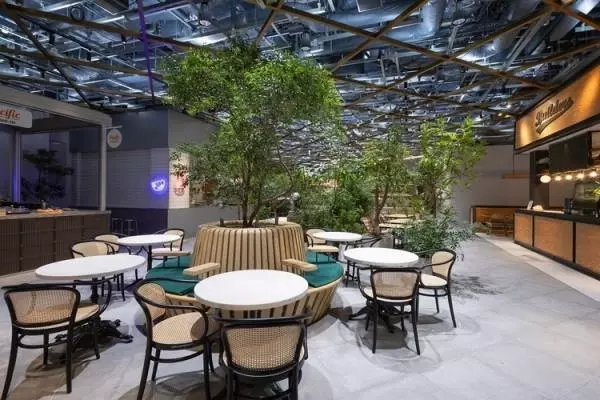 こちらは共通席の「T-MARKET PUBLIC TABLE」。11時~16時までは各店のテイクアウトフードが楽しめ、17時~23時はディナータイムで予約制となります