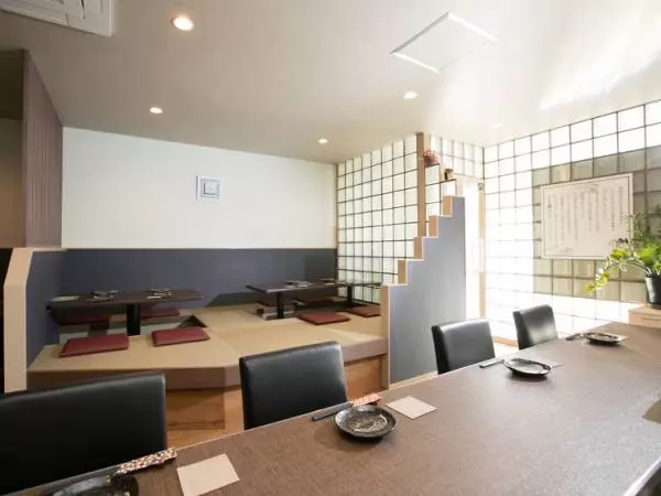店内は、和風テイストのゆったりとした空間。居心地のいいカウンター席のほか、テーブル席や掘りごたつ式の座敷も用意されています。