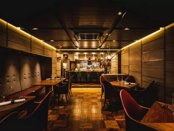 スタイリッシュで落ち着いた雰囲気の店内は、エントランスからすぐのバーカウンター、活気あふれる厨房に面したカウンター席、ゆったり食事を楽しめるテーブル席で構成されています。店名のとおり「連なり」をテーマにペアリングにも力を入れ、お店オリジナルの紹興酒から、ワイン、日本酒まで、料理にぴったりのドリンクを提案してくれます。