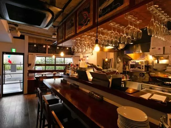 カジュアルなイタリアンムードが感じられるエントランスから店内へ入ると、ブラウンが基調の温かみのあるオシャレな空間になっています。広々としたカウンター席と大きな窓際のテーブル席は、どちらも居心地よく、ゆったりと落ち着いて食事が楽しめます。パスタやグリル料理などに合うワインも豊富にそろえられているので会話も弾むこと間違いなしです。