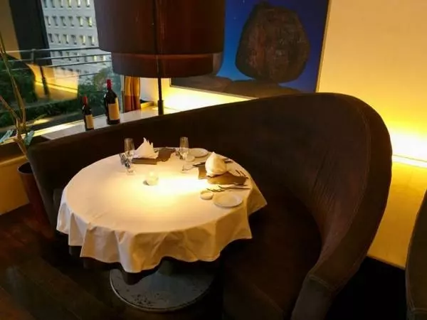 シックな雰囲気の店内は非日常で、ラグジュアリーなデートにぴったり。皇居を望む窓側席や、並んで座れる円形のソファーテーブルでゆったりと過ごせます。事前のオーダーで、デザートにメッセージを入れてくれるとっておきのサービスもあるので、バレンタインの演出に利用してみては。