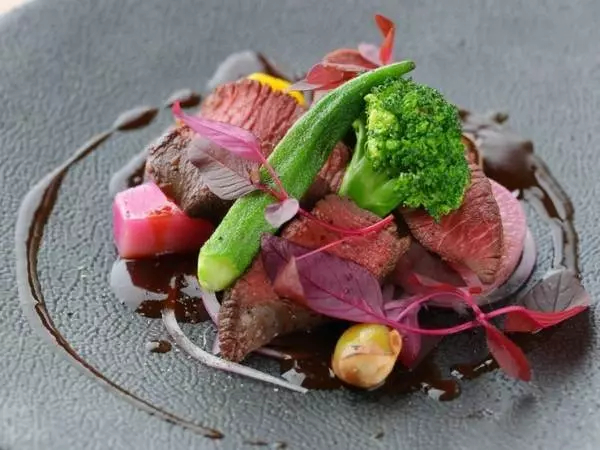 ソースの隠し味に醤油やみりんを用いる『蝦夷鹿内もものロースト赤ワインソース』