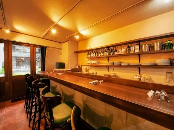 心地のよい第三の居場所、サードプレイスとして楽しめる空間の店内。木目調のインテリアで統一した、穏やかで落ち着いた雰囲気が広がっています。オープンキッチンのカウンター席は、シェフと料理についての会話も楽しめる特等席。一人でも女子どうしでもくつろげる、お気に入りにしたい一軒です。