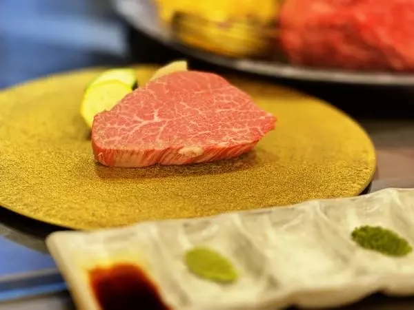 5種の調味料と楽しむ『シャトーブリアンステーキ』は、あえてカットせずに厚みのある状態で提供することで、お客様に切っていただく楽しみも感じてもらいたいとの想いが込められているそう