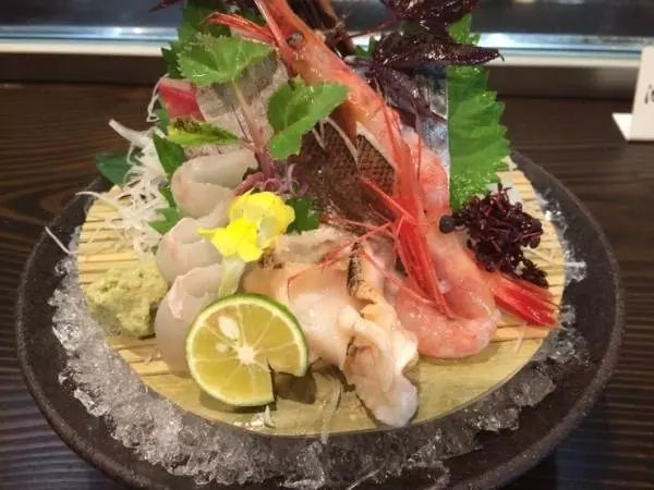 毎日仕入れる鮮魚を使用した『お刺身盛り合わせ』。カウンターの目の前で調理して提供してくれます。