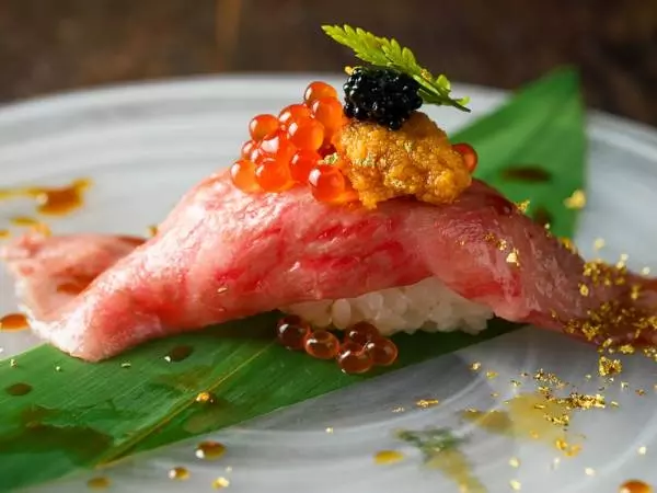 肉本来の旨みを味わえる『特選肉寿司』はウニやイクラがのった贅沢な一品
