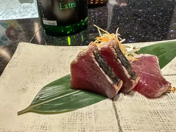 カウンターの中は広々としています。目の前で火を入れた鰹が出てきました。