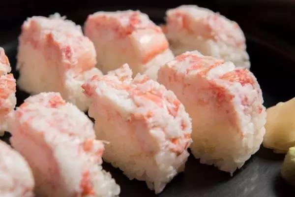 上品な見た目で華やかな、蟹身をふんだんに使った手押し寿司。自慢の蟹の旨みを思う存分味わえる人気の一品です。