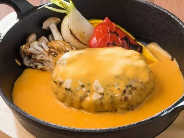 濃厚なチェダーチーズが決め手の『燻製ハンバーグ~チェダーチーズソース~』