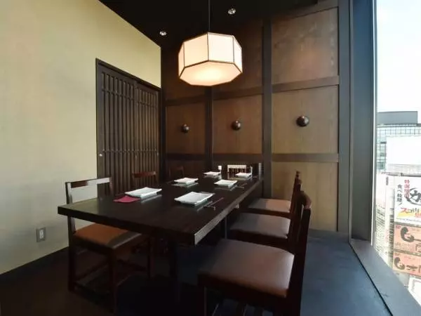 難波駅から徒歩3分。髙島屋大阪店9Fの【難波鳥幸】。店内はオープンスタイルのカウンターがメイン。白木のカウンターは高級感があり、ゆったりと食事を楽しめます。人気の個室は、大阪の街を見渡すことができるロケーションも魅力です。
